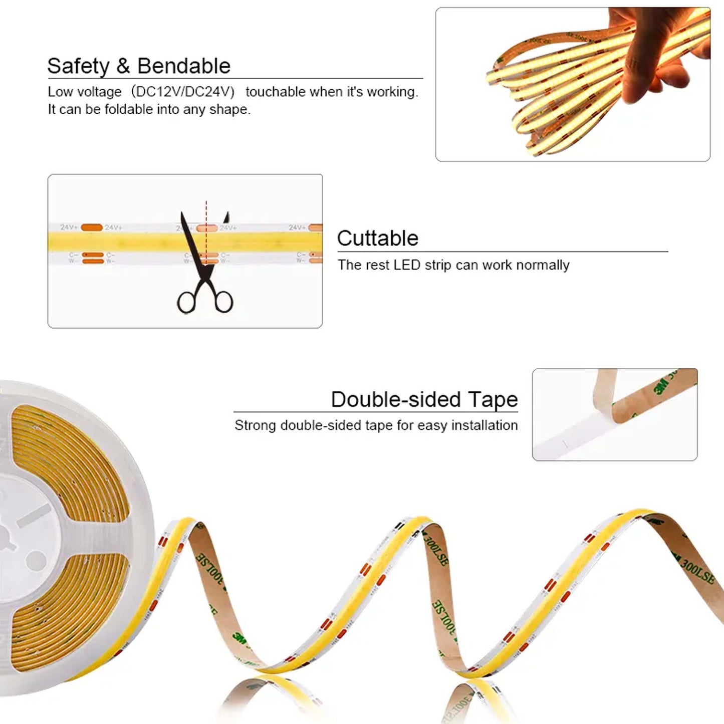 {"certification":"c-CSA-us or Equivalent","color_temp":"2700-6500","cri":"90.0","delivered_lumens":"1400.0","dimming_percentage":"Check Driver Specifications","hasQuickShip":"false","height_mm":"1.8","included_count":"1.0","included_desc":"14w\/m","lamping":"LED","led_life":"L50\/50Khrs.","length_mm":"5000.0","location":"Dry Rated","max_height_mm":"1.8","max_length_mm":"5000.0","max_width_mm":"10.0","type_of_dimmer":"Check Driver Specifications","variant_description":"3 Pin 2700-6500K - 24V - 608 LED per Meter High Output COB Tape Light 4.26 Watts per foot (14W\/m) - Uniform illumination. Featuring a premium seamless line of light with no dotting. Cuttable every 26.31mm\/1..04\", solderless connectors for an easy installation. 10mm width, IP20 rated - Dry Indoor Applications - Max Length when Powered @ 1 end 5m - use a 75W Driver. For longer lengths use (MX 5300-AMP) amplifier \u0026 wire in Parallel or series. 5 meter roll has 200mm leads at both ends.","warranty":"3 Year Limited","wattage":"14.0","width_mm":"10.0","year":"2025-01-03 00:00:00 -0800"}